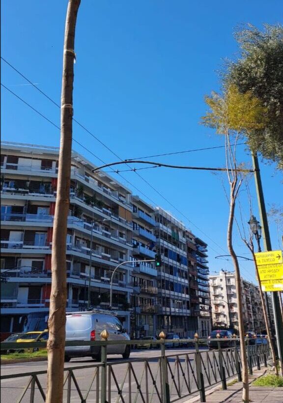 «Στη Βασιλέως Κωνσταντίνου, στο κέντρο της Αθήνας, φυτεύουμε 90 νέα δέντρα. Πανέμορφες γιακαράντες με μωβ λουλούδια την περίοδο της ανθοφορίας τους, αντικαθιστούν τις ξερές μουριές που κατέστρεψε το κινέζικο σκαθάρι τα προηγούμενα χρόνια. Κάνουμε την Αθήνα ομορφότερη, πιο πράσινη και χαιρόμαστε πολύ για αυτό».
