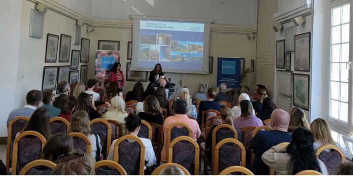 Οι εκπρόσωποι από τις νησιωτικές Περιφέρειες Ιονίου και Βορείου Αιγαίου, που κλήθηκαν από τον ΕΟΤ, παρουσίασαν στους παρισταμένους τα νησιά τους και τις τεχνικές πληροφορίες που ενδιαφέρουν κυρίως τους επαγγελματίες (διασυνδεσιμότητα, προσφερόμενες εμπειρίες, ειδικές θεματικές κλπ.) τις οποίες μοίρασαν και σε ηλεκτρονική μορφή.