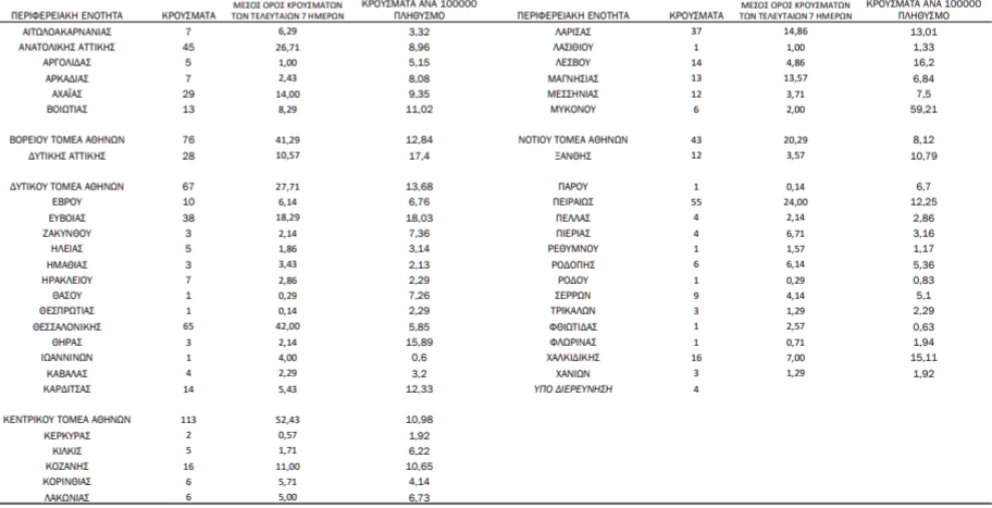 - 45 κρούσματα στην Π.Ε. Ανατολικής Αττικής.