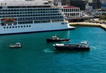 Για την ασφαλή πρόσδεση του πλοίου στο λιμάνι χρειάστηκε η σωτήρια συνδρομή τεσσάρων ισχυρών ρυμουλκών που έσπευσαν άμεσα σε βοήθεια.