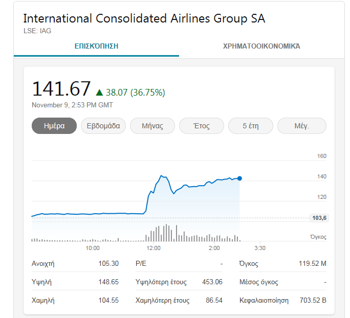 - Της IAG σημείωσαν άνοδο άνω του 37% στις συναλλαγές.