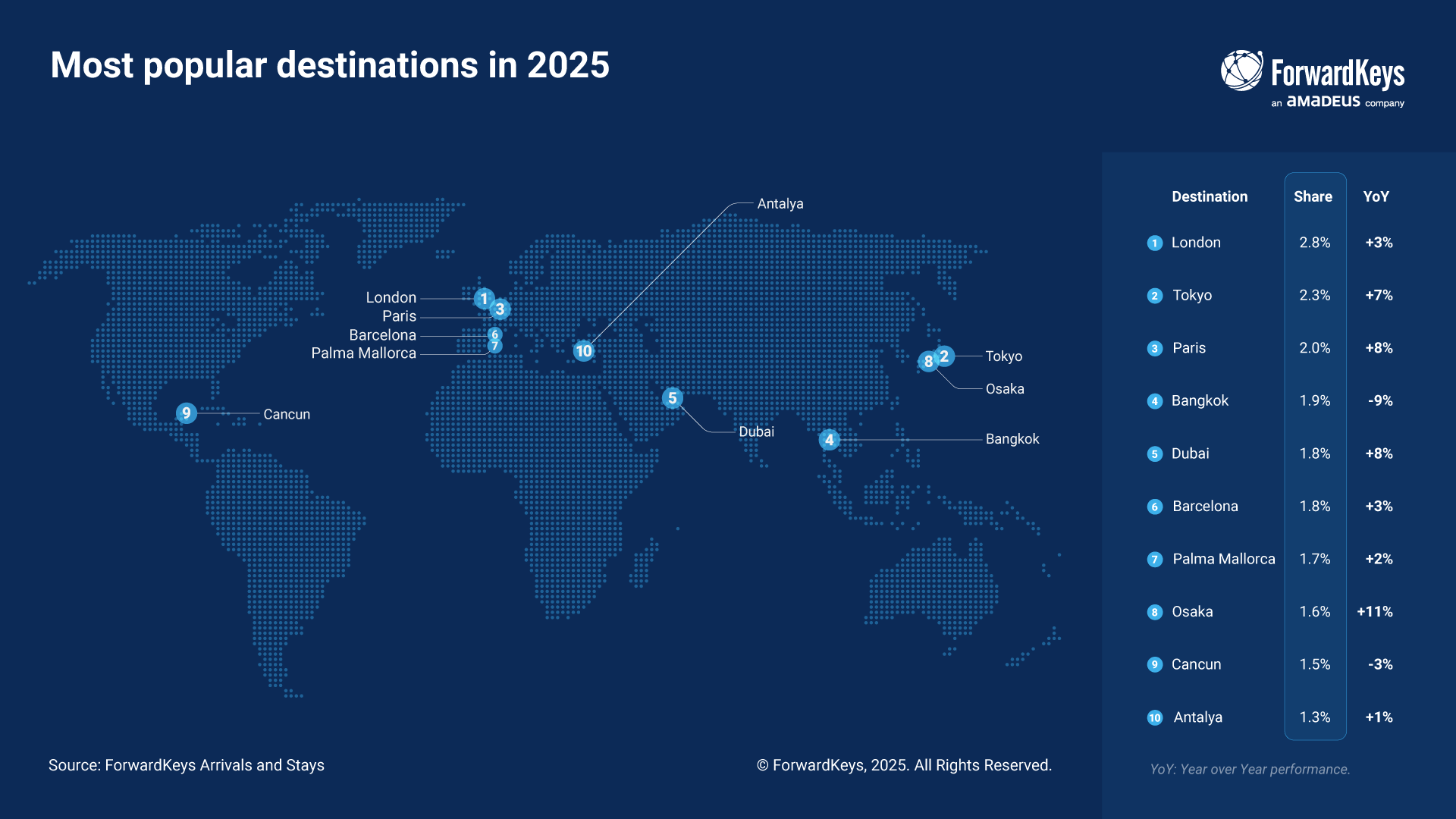 - Το Λονδίνο διατήρησε την πρωτοπορία του, ως ο πιο δημοφιλής προορισμός στον κόσμο το 2025.
