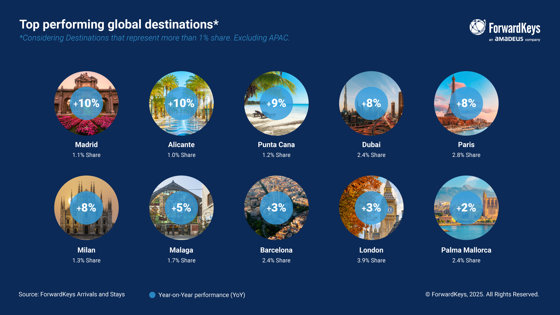 - Η Μαδρίτη παρέμεινε με τις καλύτερες επιδόσεις σε μερίδιο αγοράς (2,2%) και αναπτύχθηκε +5% σε σχέση με το 2024.