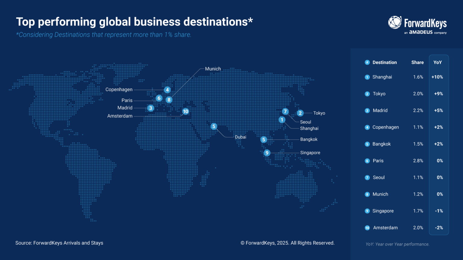- Το Παρίσι ανέβηκε στην τρίτη θέση (+2,0%), υποδεικνύοντας γενικά σταθερή ζήτηση σε αυτούς τους μεγάλους κόμβους.