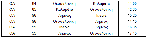 Η AEGEAN και η Olympic Air ενημερώνουν το επιβατικό κοινό ότι, σύμφωνα με τις νέες ανακοινώσεις της Υπηρεσίας Πολιτικής Αεροπορίας (ΝΟΤΑΜ), λόγω αναστολής των απεργιακών κινητοποιήσεων των Ελεγκτών Εναέριας Κυκλοφορίας (ΕΕΕΚΕ) και του Πανελλήνιου Συλλόγου Πτυχιούχων Τηλεπικοινωνιακών Υπαλλήλων (AFISO), που είχαν εξαγγελθεί για τις 25, 26 και 27 Νοεμβρίου 2020, τροποποιούν εκ νέου το πρόγραμμά τους και προχωρούν στην πραγματοποίηση των παρακάτω πτήσεων, ως ακολούθως: