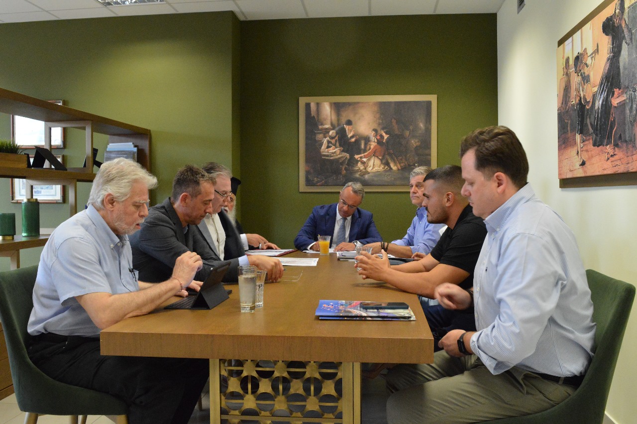 Η πρόοδος υλοποίησης του Προαστιακού Δυτικής Θεσσαλονίκης αποτέλεσε αντικείμενο σύσκεψης του Υπουργού Υποδομών και Μεταφορών Χρήστου Σταϊκούρα, με τον Αντιπεριφερειάρχη Θεσσαλονίκης, Κώστα Γιουτίκα, χθες, στην Περιφέρεια Κεντρικής Μακεδονίας, παρουσία του Σεβασμιώτατου Μητροπολίτη Νεαπόλεως και Σταυρουπόλεως, Βαρνάβα.