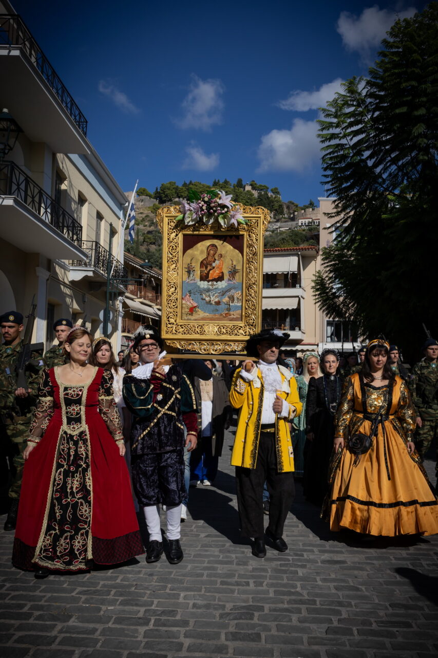 Οι εορταστικές εκδηλώσεις, που πραγματοποιήθηκαν με τη συμμετοχή πλήθους πολιτών και επισκεπτών, κορυφώθηκαν το πρωί της Κυριακής με την Αρχιερατική Θεία Λειτουργία, τη Δοξολογία και την Επιμνημόσυνη Δέηση στο Ενετικό Λιμάνι.
