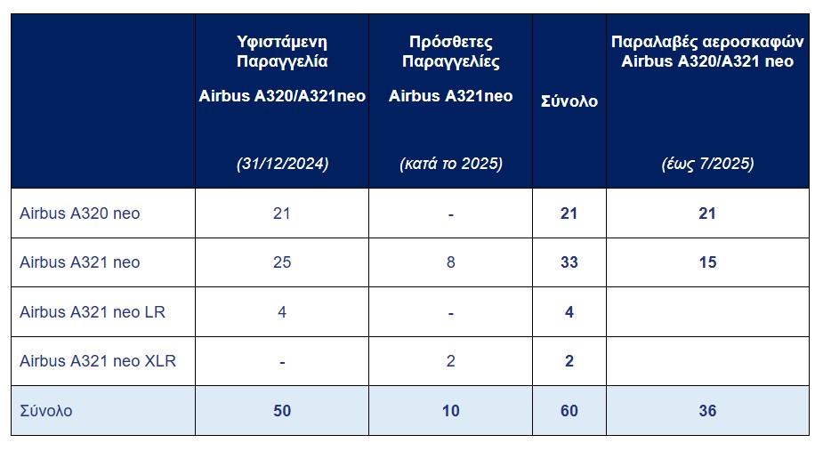 Με την προσθήκη αυτή το συνολικό μέγεθος της παραγγελίας σε Airbus 320/321 neo φτάνει τα 60 αεροσκάφη από τα οποία μέχρι σήμερα έχουν ήδη παραληφθεί τα 36.