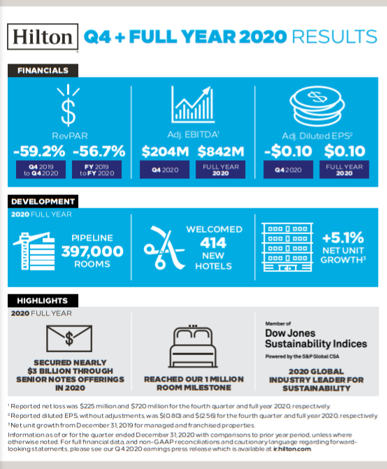 Η Hilton σημείωσε απώλεια 720 εκατομμυρίων δολαρίων κατά τη διάρκεια του 2020, συμπεριλαμβανομένης απώλειας 225 εκατομμυρίων δολαρίων για το τέταρτο τρίμηνο.