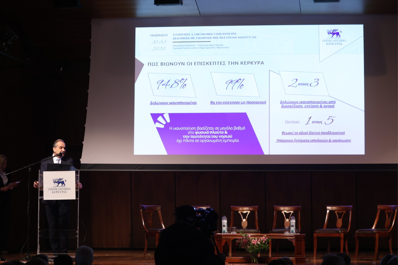 Μια ολοκληρωμένη εικόνα για τον τουρισμό και την οικονομία της Κέρκυρας παρουσιάστηκε μέσα από δύο νέες μελέτες, που αποτυπώνουν τόσο την εμπειρία των επισκεπτών όσο και τη δομή της τοπικής αγοράς, θέτοντας τις βάσεις για τον σχεδιασμό της επόμενης ημέρας του προορισμού.