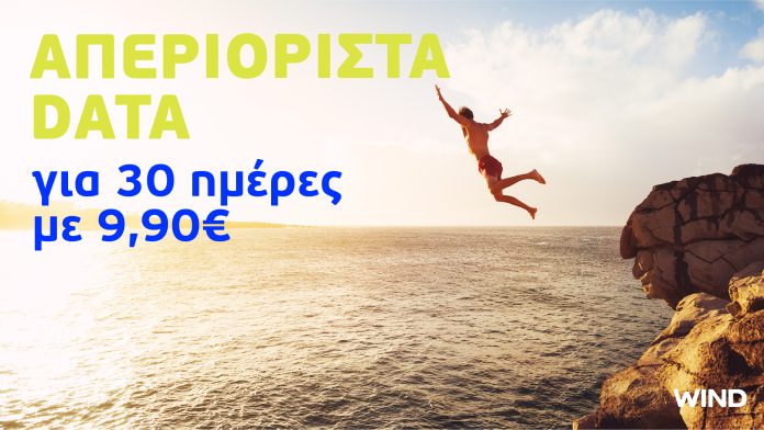 H WIND, και φέτος το καλοκαίρι, απογειώνει τις δυνατότητες των συνδρομητών της προσφέροντας ΑΠΕΡΙΟΡΙΣΤΑ DATA για 30 ημέρες. Με την κορυφαία εμπειρία και την εγγύηση των δικτύων νέας γενιάς 4G, 4G+ και 5G της WIND, όλοι οι συνδρομητές της θα μπορούν για όλο το καλοκαίρι να σερφάρουν ασταμάτητα, να μοιράζονται απεριόριστα τις εμπειρίες τους με τα αγαπημένα τους πρόσωπα, να ψυχαγωγούνται αλλά και να εργάζονται από όπου και αν βρίσκονται.