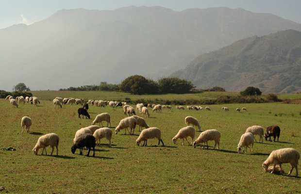 Κατσίκες και πρόβατα βόσκουν τα άγρια βότανα και τα χορταρικά, πίνουν το νερό της πηγής και ξαποσταίνουν κάτω από τις μηλιές και τις κερασιές προκειμένου να δώσουν το επόμενο πρωί το γάλα τους.