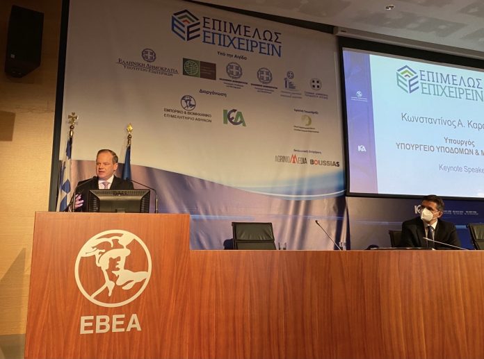 Το πρόγραμμα έργων υποδομών, που αλλάζει το παραγωγικό μοντέλο της χώρας και την καθημερινότητα των πολιτών, ανέπτυξε ο Υπουργός Υποδομών και Μεταφορών, κ. Κώστας Καραμανλής, στο Στρατηγικό Συνέδριο “Επιμελώς Επιχειρείν”, που διοργανώνουν το Εμπορικό & Βιομηχανικό Επιμελητήριο Αθηνών (ΕΒΕΑ) και το Ελληνικό Ινστιτούτο Επιχειρηματικότητας και Αειφόρου Ανάπτυξης (IEA).
