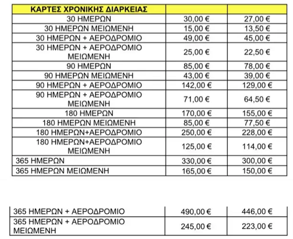 Ειδικά για τους νέους χρήστες ετήσιων καρτών θα δοθούν επιπλέον 37 μέρες (οι οποίες αντιστοιχούν σε έκπτωση 10% που είχε εξαγγείλει ο Υπουργός Υποδομών & Μεταφορών, κ. Κώστας Καραμανλής). Με άλλα λόγια αντί για 365 ημέρες μετακίνησης, θα παίρνουν 402 ημέρες.