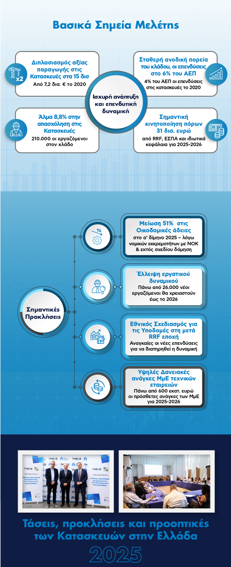 Μέσα από τη μελέτη αναδεικνύεται με σαφήνεια η δυναμική πορεία του κλάδου των κατασκευών και η σημαντική συμβολή του στην εθνική οικονομία.