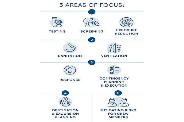 Η έρευνα προσδιορίζει πέντε τομείς που πρέπει να αντιμετωπίσει κάθε χειριστής κρουαζιέρας, ώστε, να μειώσει τον κίνδυνο μόλυνσης και εξάπλωσης του COVID-19: