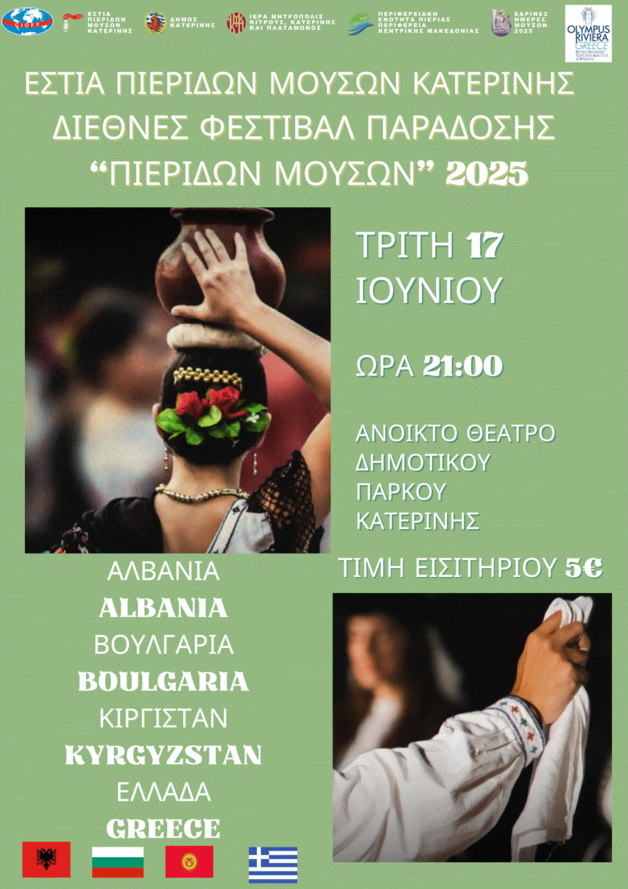 Ο Πιερικός Οργανισμός Τουριστικής Ανάπτυξης και Προβολής (Π.Ο.Τ.Α.Π.), με σταθερό προσανατολισμό στην ενίσχυση της πολιτιστικής ταυτότητας και την τουριστική ανάπτυξη της Πιερίας, συμμετέχει ως υποστηρικτής στο Διεθνές Φεστιβάλ Παράδοσης «Πιερίδων Μουσών», που αποτελεί πλέον θεσμό για την Πιερία και σημείο αναφοράς για την ανάδειξη της άυλης πολιτιστικής κληρονομιάς.