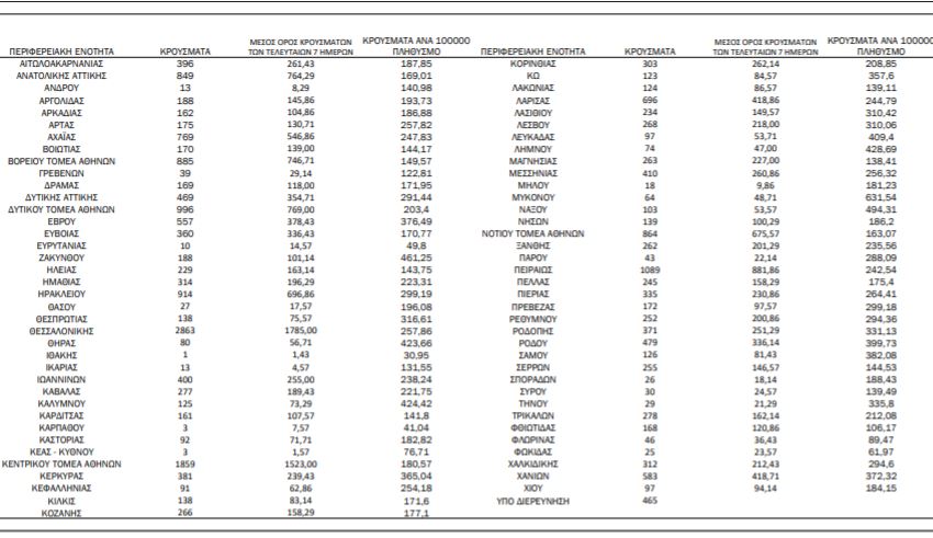 Αναλυτικά τα κρούσματα σε Κρήτη