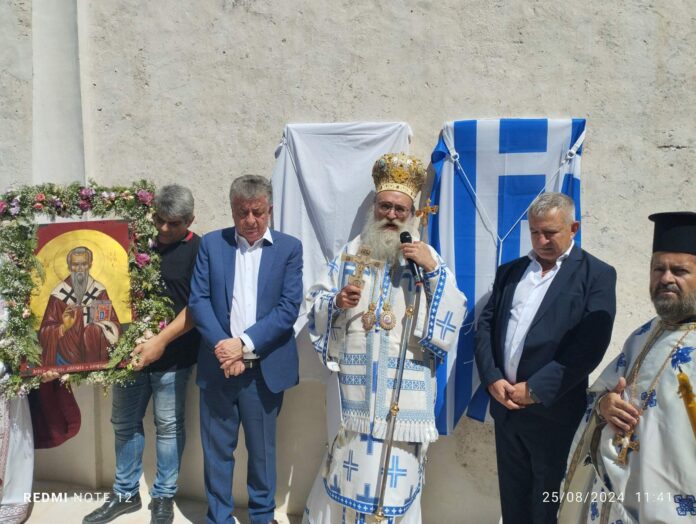 Ο Σεβασμιώτατος παράλληλα με την σχετική πράξη δώρισε στον κ. Αρναουτάκη αναμνηστικό πίνακα του ιδρύματος, ενώ στην συνέχεια ο Μητροπολίτης, ο Περιφερειάρχης και ο Δήμαρχος Γρηγόρης Νικολιδάκης προχώρησαν στην αποκάλυψη επιγραφών για το ιστορικό του παλαιού Ναού και της ανακαίνισης του.