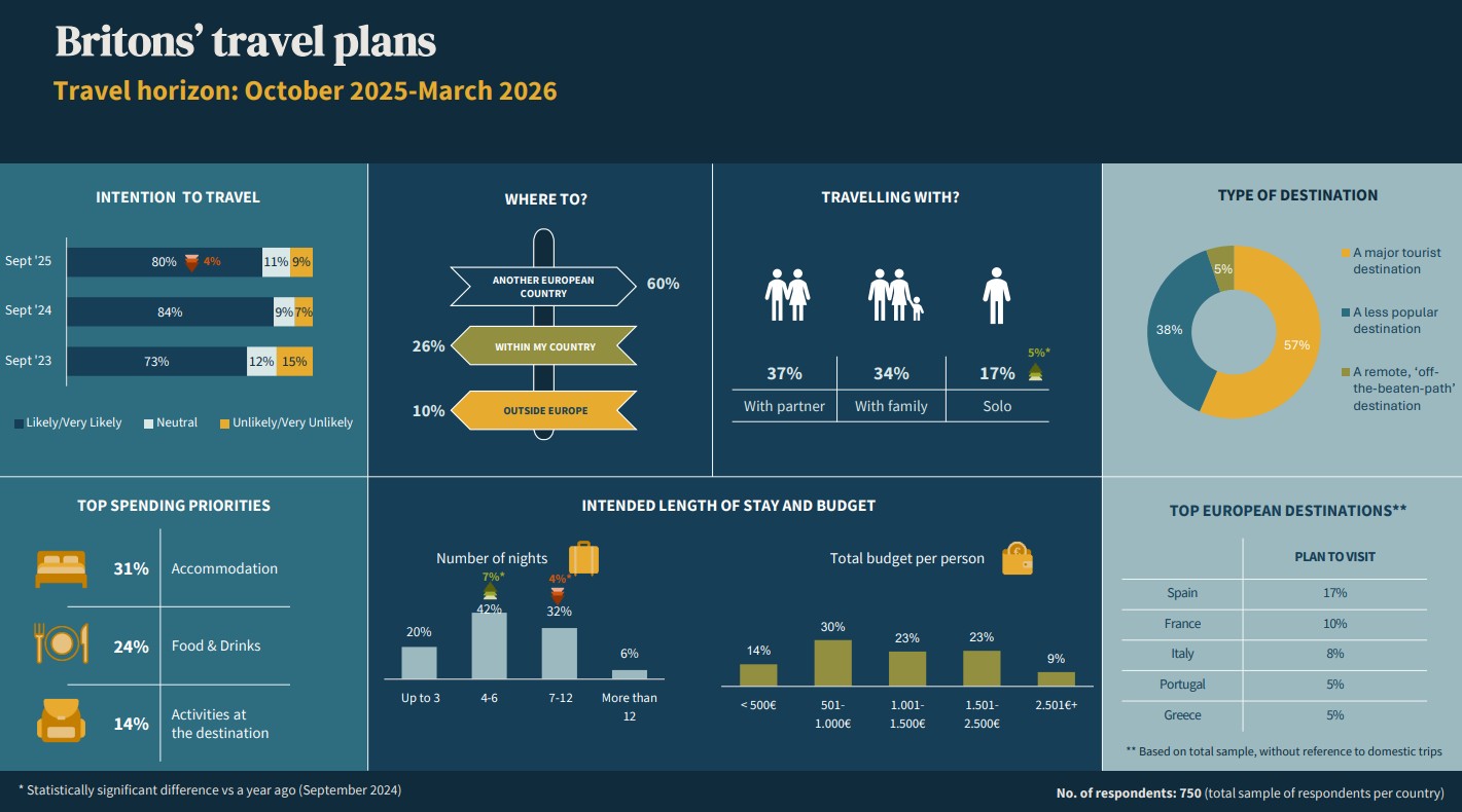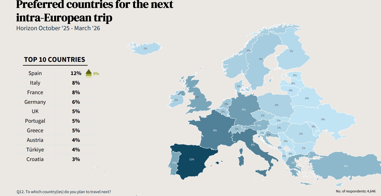 Ενώ ο ενθουσιασμός για ταξίδια παραμένει υψηλός, οι Ευρωπαίοι σχεδιάζουν συνολικά λιγότερα ταξίδια από ό,τι πέρυσι.