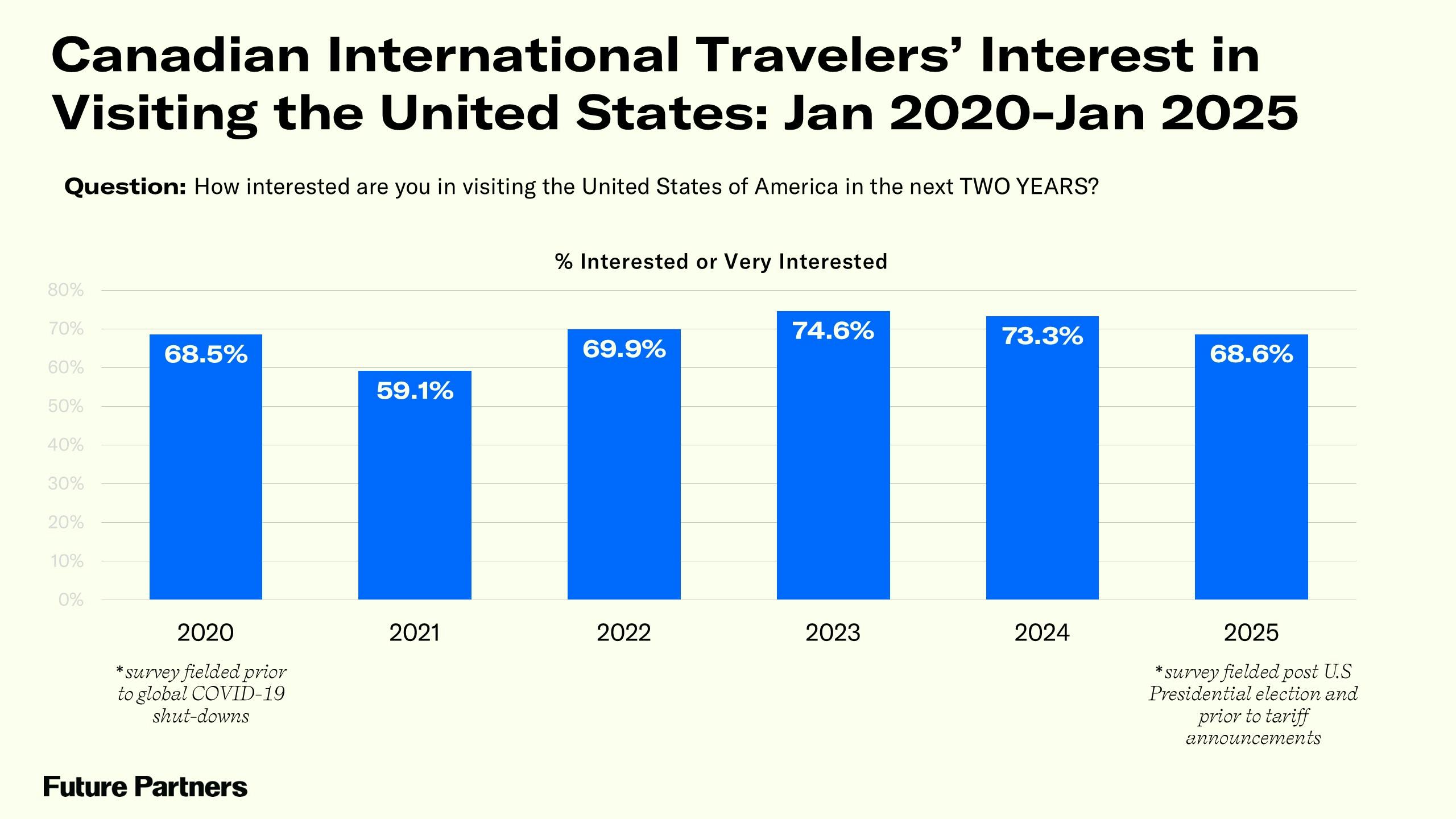 - Το 68,6% των Καναδών διεθνών ταξιδιωτών ενδιαφέρεται να επισκεφθεί τις ΗΠΑ τα επόμενα δύο χρόνια.