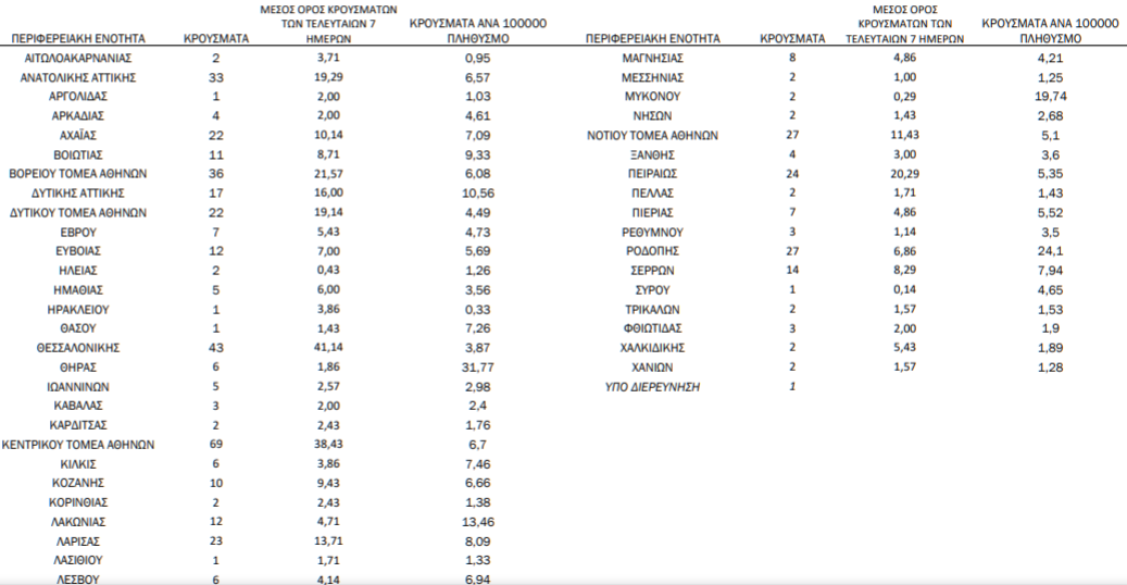 Η Αττική παραμένει στο “κόκκινο”, καθώς το τελευταίο 24ωρο καταγράφηκαν 230 κρούσματα.