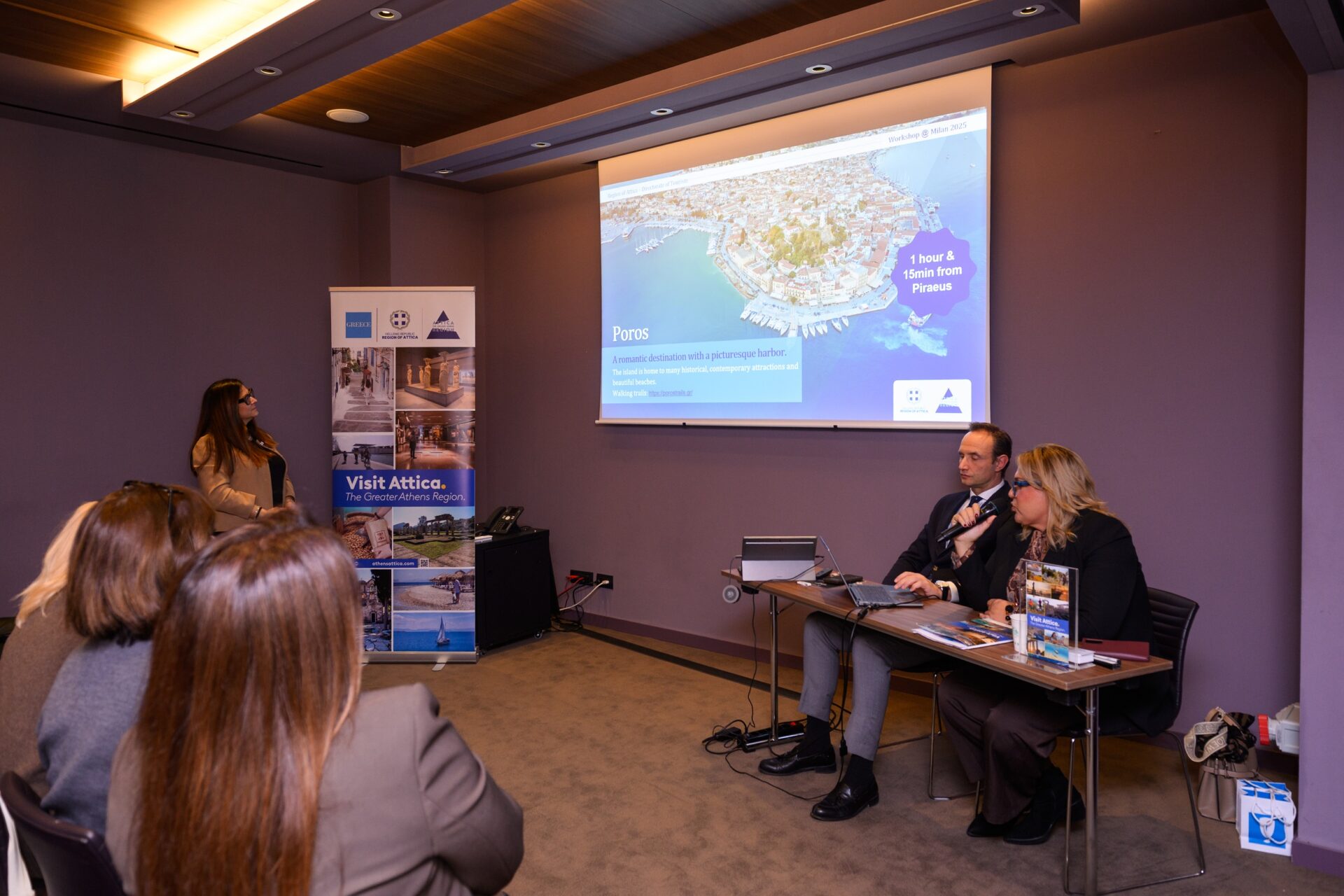 Από την πλευρά της, η προϊσταμένη της Διεύθυνσης Τουρισμού της Περιφέρειας Αττικής, Αθηνά Κολυβά, παρουσίασε διεξοδικά τον προορισμό, συμπεριλαμβανομένων των νησιών της, αναδεικνύοντας τον πολιτισμό, τη γαστρονομία, το αστικό απόθεμα, το παραθαλάσσιο μέτωπο και τις εναλλακτικές μορφές τουρισμού που προσφέρει στους επισκέπτες.