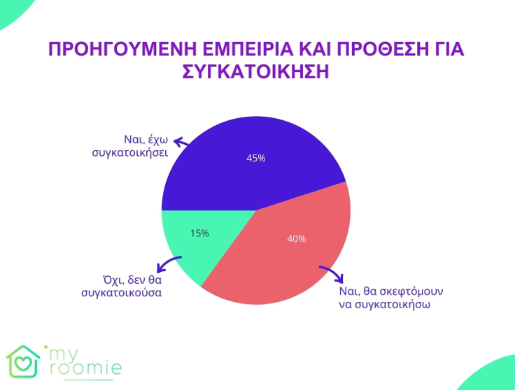 - Η έρευνα, η οποία συγκέντρωσε πληροφορίες από περισσότερους από χίλιους ερωτηθέντες, αποκαλύπτει ότι το 45% των συμμετεχόντων έχουν συγκατοικήσει στο παρελθόν, με ένα επιπλέον 40% να το θεωρεί ως βιώσιμη επιλογή διαβίωσης.