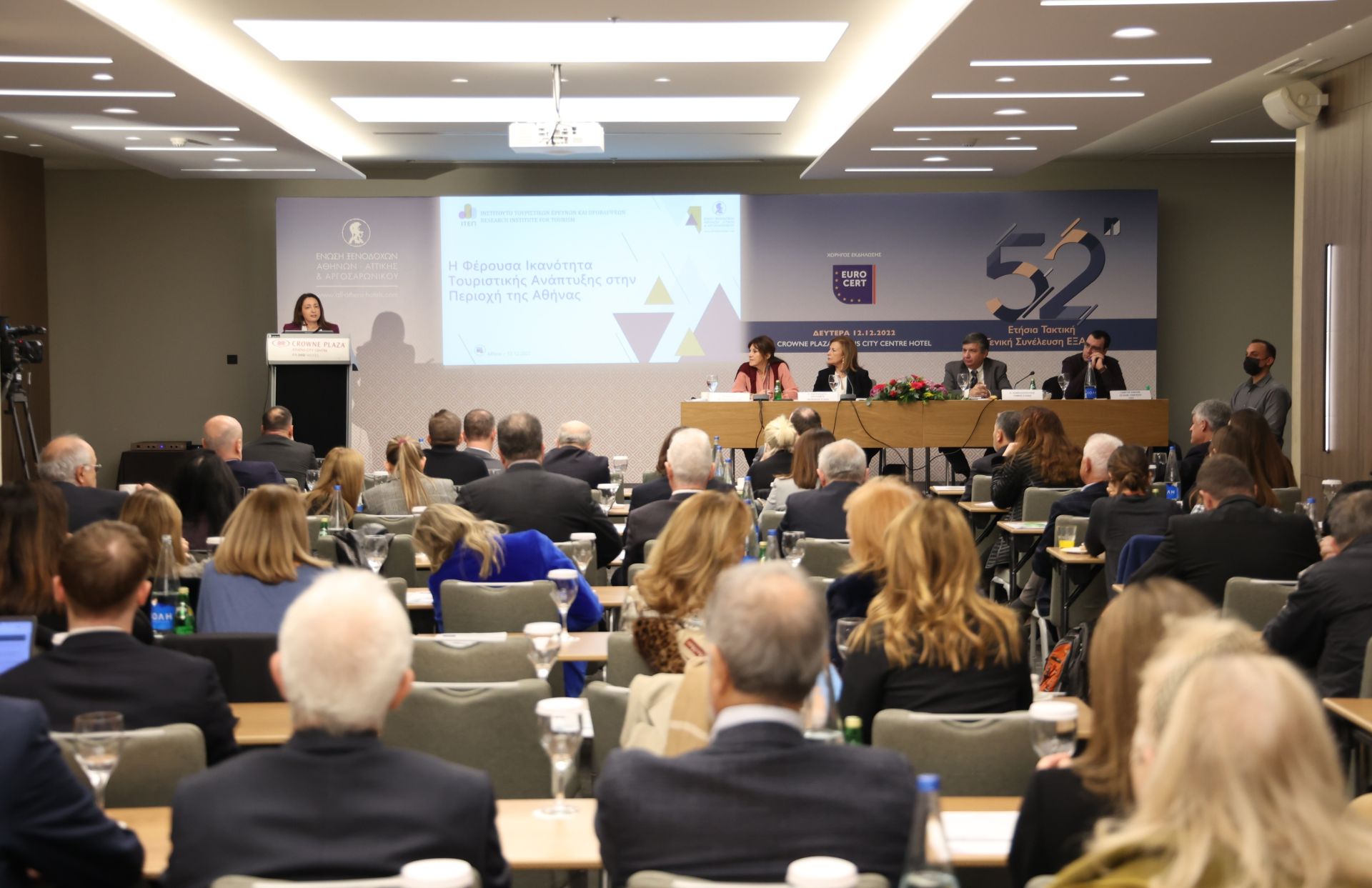 Μια πρωτοποριακή μελέτη για την λεγόμενη “Φέρουσα Ικανότητα” της Αθήνας – Αττικής ως τουριστικού προορισμού παρουσίασε η Ένωση Ξενοδόχων Αθηνών – Αττικής και Αργοσαρωνικού στο πλαίσιο της 52ης Ετήσιας Τακτικής Γενικής Συνέλευσης ΕΞΑΑΑ, η οποία πραγματοποιήθηκε την Δευτέρα 12.12.2022 στο ξενοδοχείο Crowne Plaza Athens City Centre.