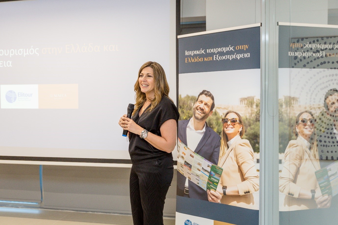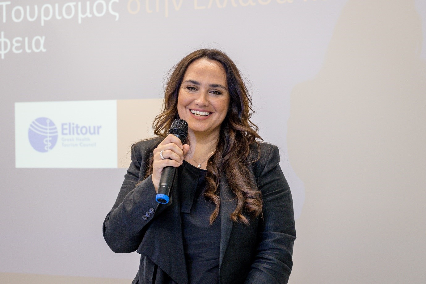 Στο πλαίσιο της εκδήλωσης, η κα Χριστίνα Ταμπουρέα, Αντιπρόεδρος της ΕΛΙΤΟΥΡ, υπογράμμισε ότι οι θεραπείες, η καινοτομία και οι υψηλού επιπέδου υπηρεσίες υγείας αποτελούν ανταγωνιστικά πλεονεκτήματα και που απαιτούνται οργανωμένες πρωτοβουλίες για την προβολή και την αξιοποίησή τους.