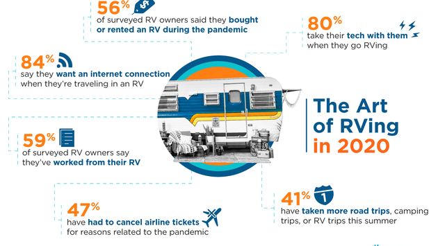 - Το 56% δήλωσε ότι είχαν αγοράσει ή ενοικιάσει ένα RV λόγω του COVID-19.