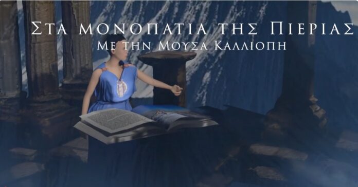 Στον πρωταγωνιστικό ρόλο εμφανίζεται η ψηφιακή εκδοχή της Μούσας Καλλιόπης, θεάς της ποίησης και της επικής αφήγησης, η οποία γίνεται η φανταστική ξεναγός του θεατή στα πλούτη της Πιερίας από τον μυστηριακό Όλυμπο και τα Πιέρια Όρη και τις ατελείωτες ακτές, έως τα ιστορικά και πολιτιστικά της μνημεία.