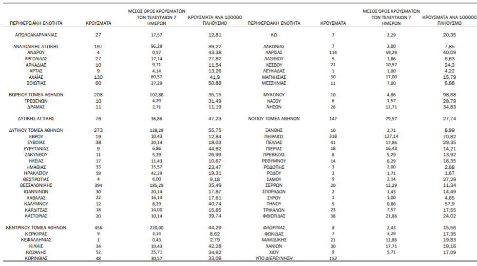 Με βάση τα επιβεβαιωμένα κρούσματα των τελευταίων 7 ημερών: