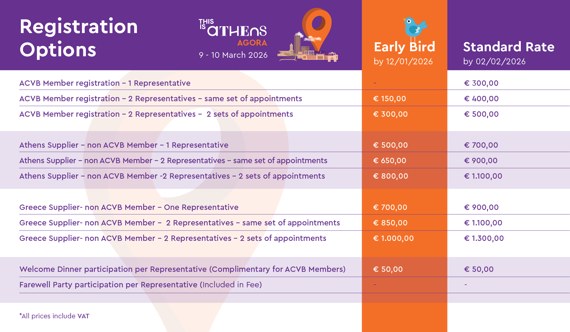 Παράλληλα, όλα τα ενεργά μέλη του This is Athens CVB δικαιούνται μία δωρεάν συμμετοχή για έναν εκπρόσωπο, για ένα σετ ραντεβού είτε στον τομέα MICE είτε Leisure.