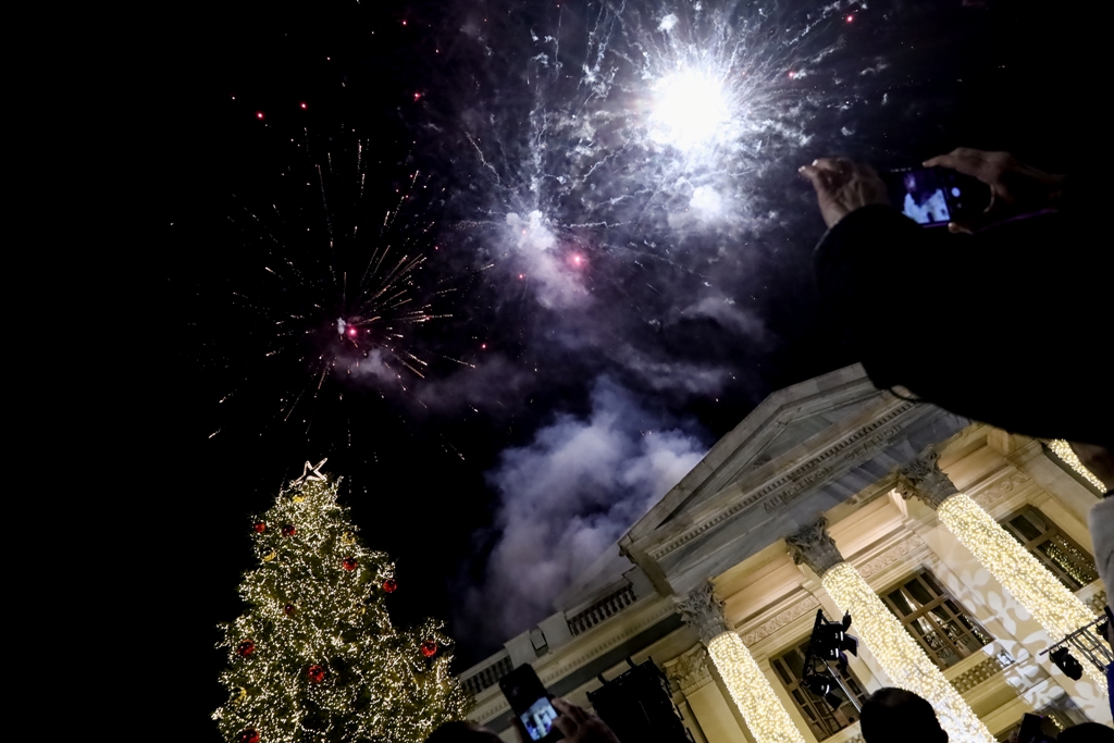 Με τη φωταγώγηση του Χριστουγεννιάτικου δέντρου, σε μια «μαγική» ατμόσφαιρα, δεκάδες πυροτεχνήματα φώτισαν τον Πειραϊκό ουρανό.