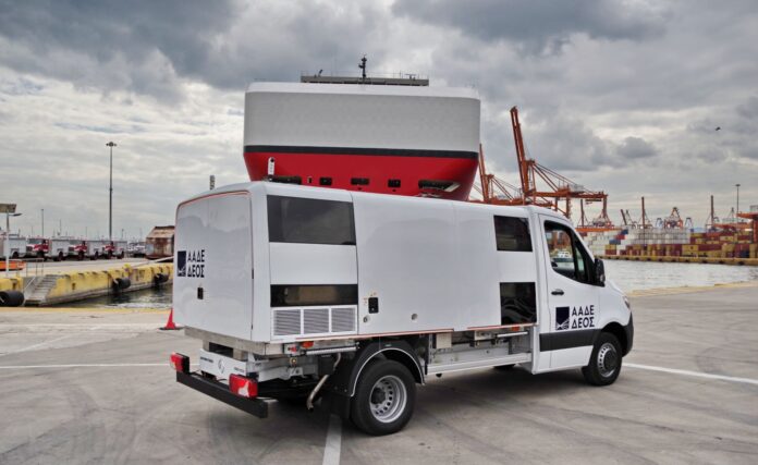 Ο πρωτοποριακός αυτός εξοπλισμός, που θα χρησιμοποιεί η Τελωνειακή Αρχή της ΑΑΔΕ, παρουσιάστηκε χθες σε ειδική εκδήλωση στον Οργανισμό Λιμένα Πειραιά παρουσία της πρέσβεως των ΗΠΑ στην Ελλάδα, Kimberly Guilfoyle, του Διοικητή της ΑΑΔΕ, Γιώργου Πιτσιλή, του Διευθύνοντος Συμβούλου της Κοινωνίας της Πληροφορίας, Σταύρου Ασθενίδη και του Γενικού Διευθυντή Επιχειρηματικής Ανάπτυξης της ΓΕΚ ΤΕΡΝΑ, Εμμανουήλ Μουστάκα.
