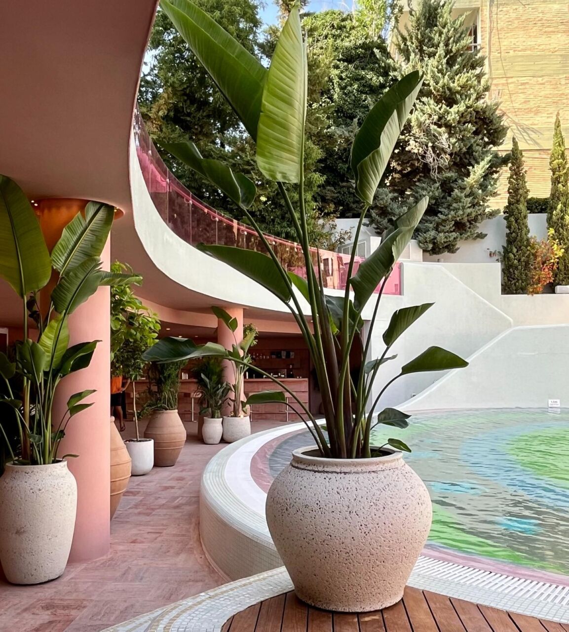 Με πρωταγωνιστή το χρώμα, αλλά πλέον με προσανατολισμό στις θερμές, παστέλ αποχρώσεις του ροζ και στο φυσικό πράσινο, καθώς και σταθερή αδυναμία στο σύγχρονο design, η πισίνα του Semiramis υποδέχεται το καλοκαίρι του 2024, σαφώς ανανεωμένη.