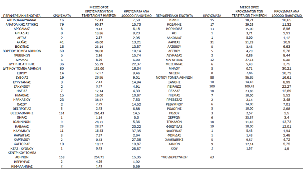 Με βάση τα επιβεβαιωμένα κρούσματα των τελευταίων 7 ημερών: