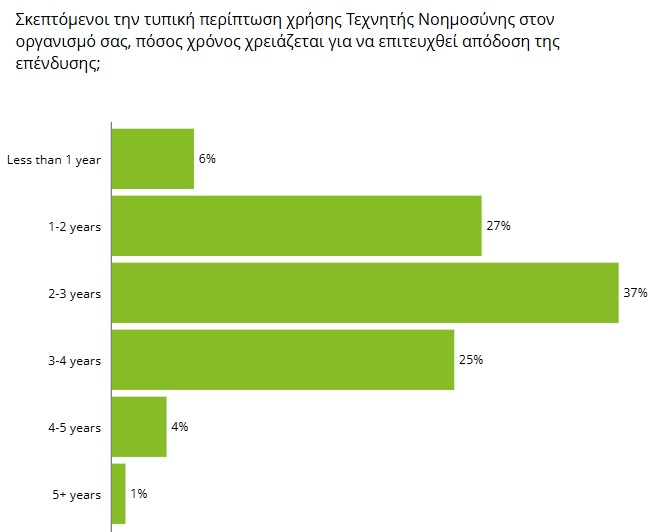 • Μόνο 6% των οργανισμών πέτυχαν απόδοση μέσα σε λιγότερο από ένα έτος, ενώ μόλις 13% είδαν αποτέλεσμα εντός 12 μηνών.