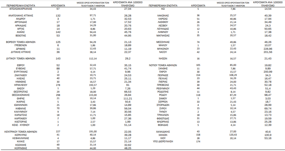 Με βάση τα επιβεβαιωμένα κρούσματα των τελευταίων 7 ημερών: